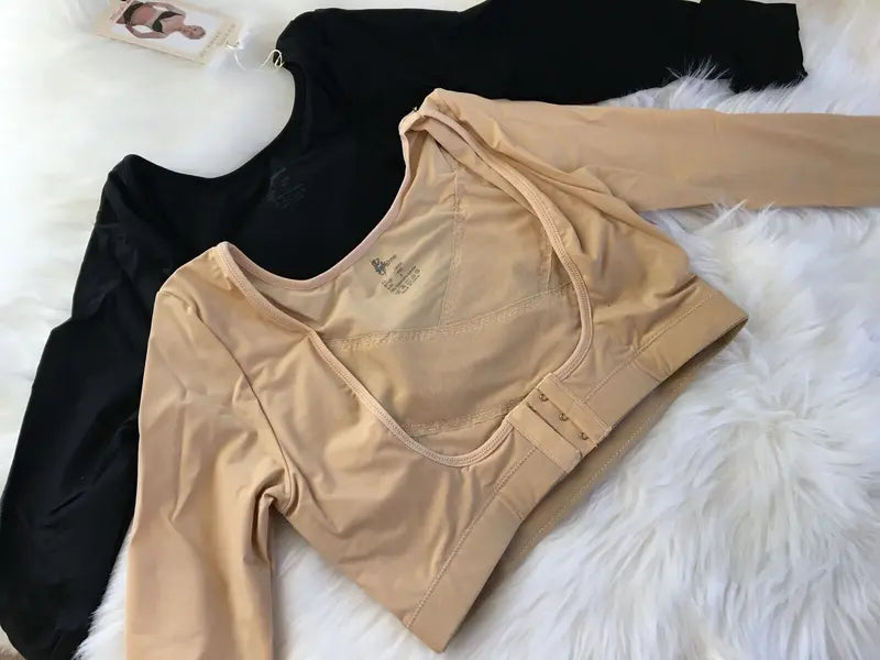 Sculpt and smooth your silhouette with this innovative arm shaper top. The 3/4 sleeves hug and contour your arms for an instantly slimmer appearance, while criss-cross bands support your posture and enhance your back. Adjustable hooks provide customizable lift and support where you need it most. Crafted from a breathable nylon-spandex blend, this versatile toner works seamlessly under your favorite outfits for all-day confidence and comfort.